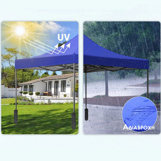 ☔ Η οροφή και τα αποσπώμενα πλαϊνά είναι κατασκευασμένα από ύφασμα πολυαιθυλενίου, ανθεκτικό στην υγρασία και στις δυσμενείς καιρικές συνθήκες.